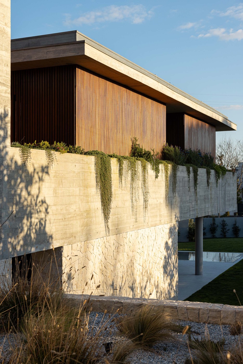 The project follows a contemporary approach, using natural materials and solutions that enhance the integration of indoors and outdoors. The volumetric composition combines exposed concrete, wood, and stone, balancing robustness and elegance. Overall, the design emphasizes functionality, comfort, and harmony with the siteās topography.