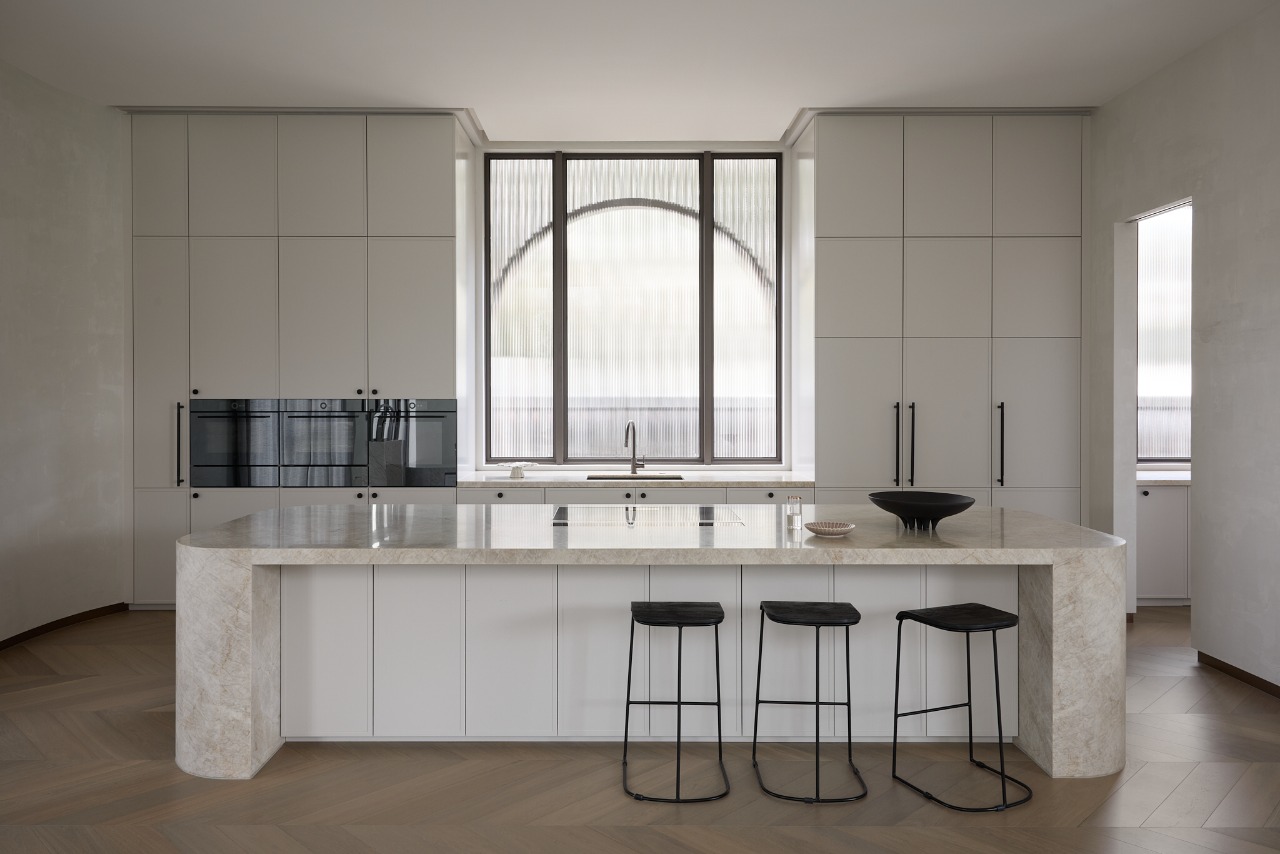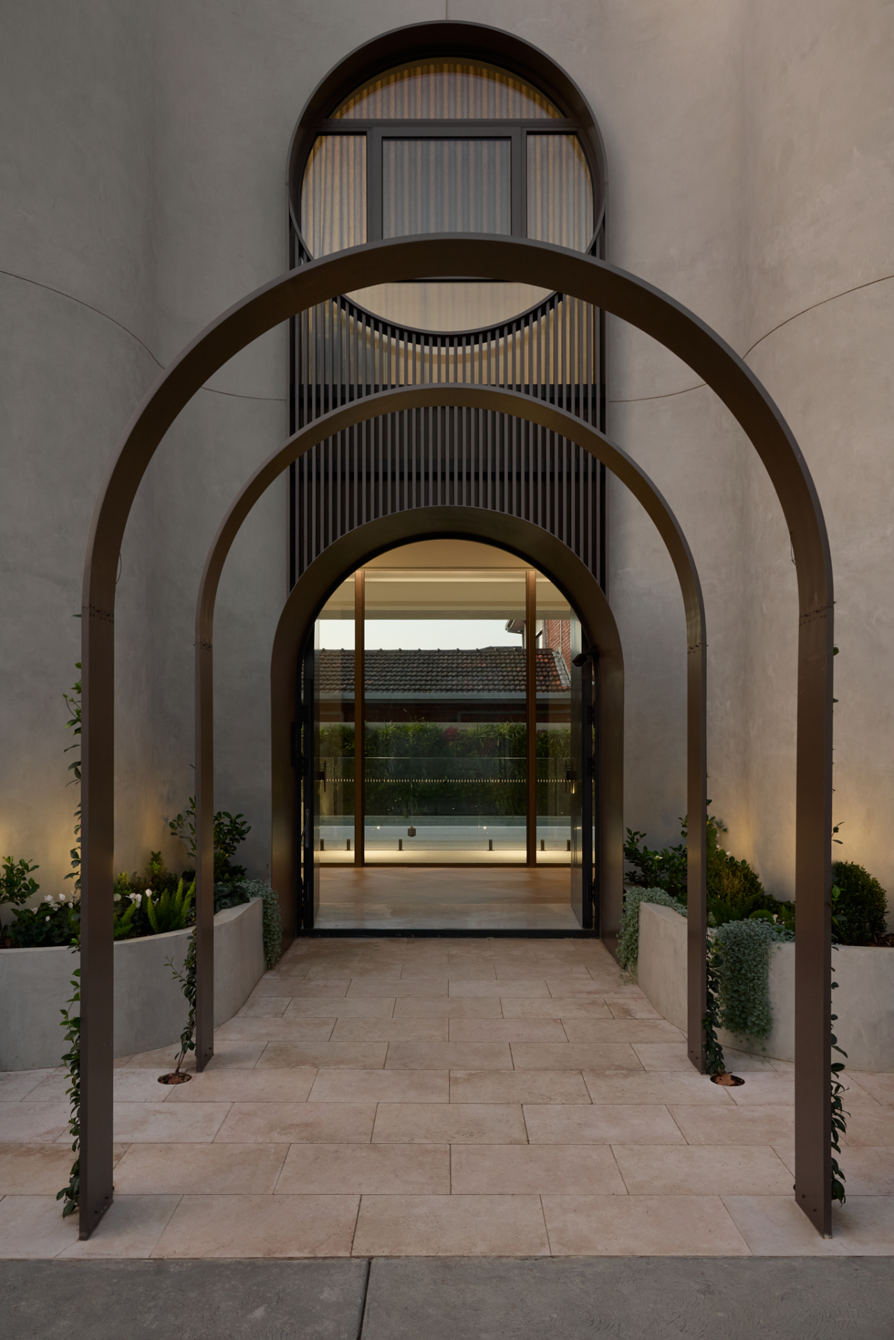 Shaped for multigenerational living, Thomas responds to the evolving needs of its inhabitants. Located in Melbourne’s Kew, the aim was to sensitively reflect and readapt modes of kinship while honouring our clients’ values and heritage. The curved language guides the eye and body through the home to create a seamless dialogue between the built and natural environment. At the centre, was the concept of ‘place’ as synonymous with change and flexibility. Through craftsmanship, careful considerations were made to make the home agile and spatially evolving.