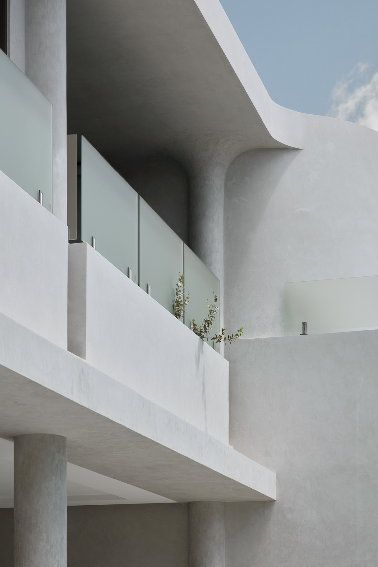 Bespoke details, high level materials and craftsmanship are integrated throughout the home. A key example is the external form work of the mushroom profile columns and external curved walls. All of which were poured on site, and set within custom manufactured moulds. Each aspect of the design and build revolved around longevity; to build endurance within the home and by extension the family.
