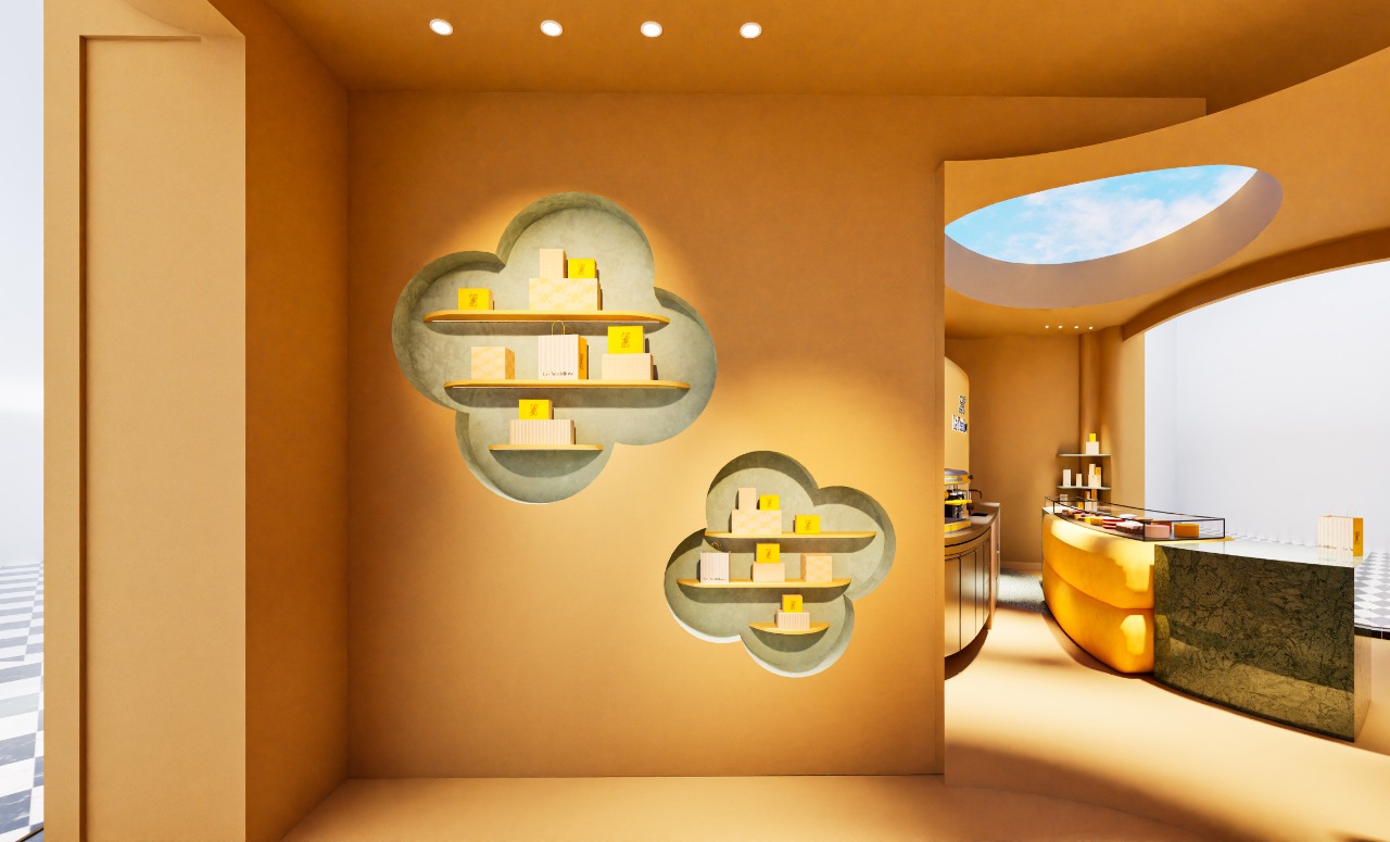 Beyond its poetic presence, this path serves a spatial function—guiding circulation and flow. The natural tones offer visual relief from the brand’s vibrant yellow and introduce an earthy, grounding influence. The path becomes a conceptual bridge between story and movement.