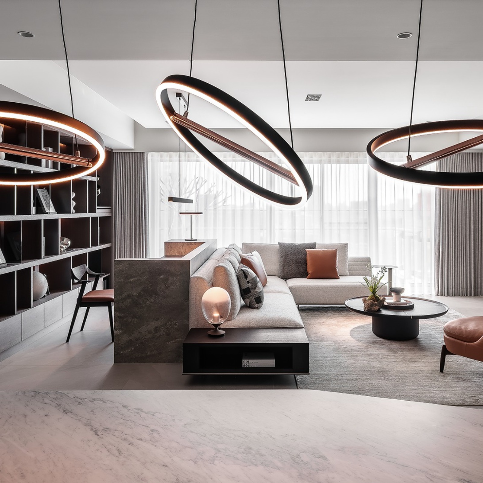 This residential design project elegantly embodies the theme “Dual Realm Symphony: Modern and Classical in Harmony,” skillfully addressing the unique spatial aspirations of a couple with differing tastes. The husband is drawn to the sleek lines and bold contrasts of modern minimalism, while the wife yearns for the soft, sensual, and sophisticated ambiance characteristic of neoclassical elegance. In essence, design transcends mere compromise; it is an art of fulfillment. Through continuous dialogue, active listening, and thoughtful integration, we artfully weave together the dynamic vitality of modern design with the timeless grace of classical elements, resulting in a harmonious blend of two distinct lifestyles. Furthermore, order is established through the meticulous arrangement of lines and the careful selection of materials, while the interplay of light and shadow enriches the overall depth and dimension of the space. As a result, a natural flow guides movement throughout the home, transforming it into a serene sanctuary that nurtures love and emotion. Ultimately, this design serves not only as a residence but also as a testament to the couple’s unique journey together.