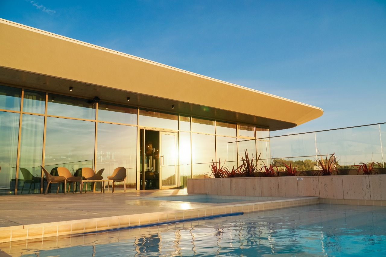The futuristic architecture of the Clubhouse at Peralta Beach condenses the bold, modern, approach to coastal living at Peralta Beach even further by way of a 1930’s lido-inspired pavilion that acts as a dynamic fulcrum within the low-density urban landscape.