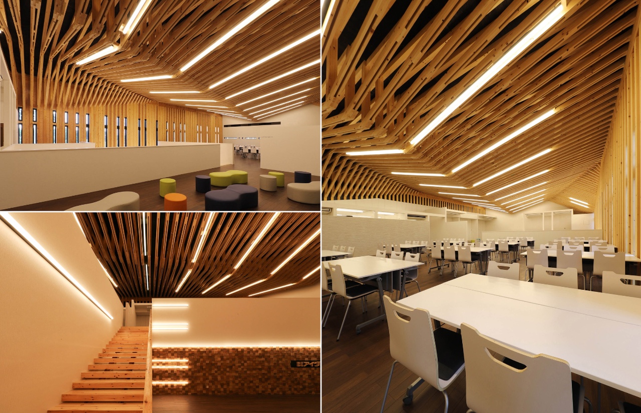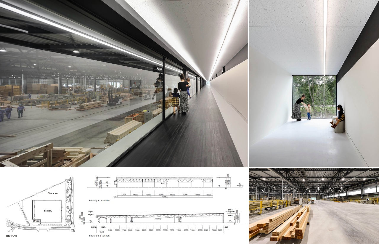 A standout feature is the nearly 100-meter-long viewing aisle, ensconced within a wooden shell adorned with random stripes, creating the illusion of floating off the factory’s wall. This design element, with its emphasis on acceleration and speed, seeks to evoke Aida Sekkei’s dynamic evolution towards the future. Through this project, Aida Sekkei not only highlights its commitment to quality and innovation in timber processing but also affirms its role in shaping the future of traditional Japanese timber construction.