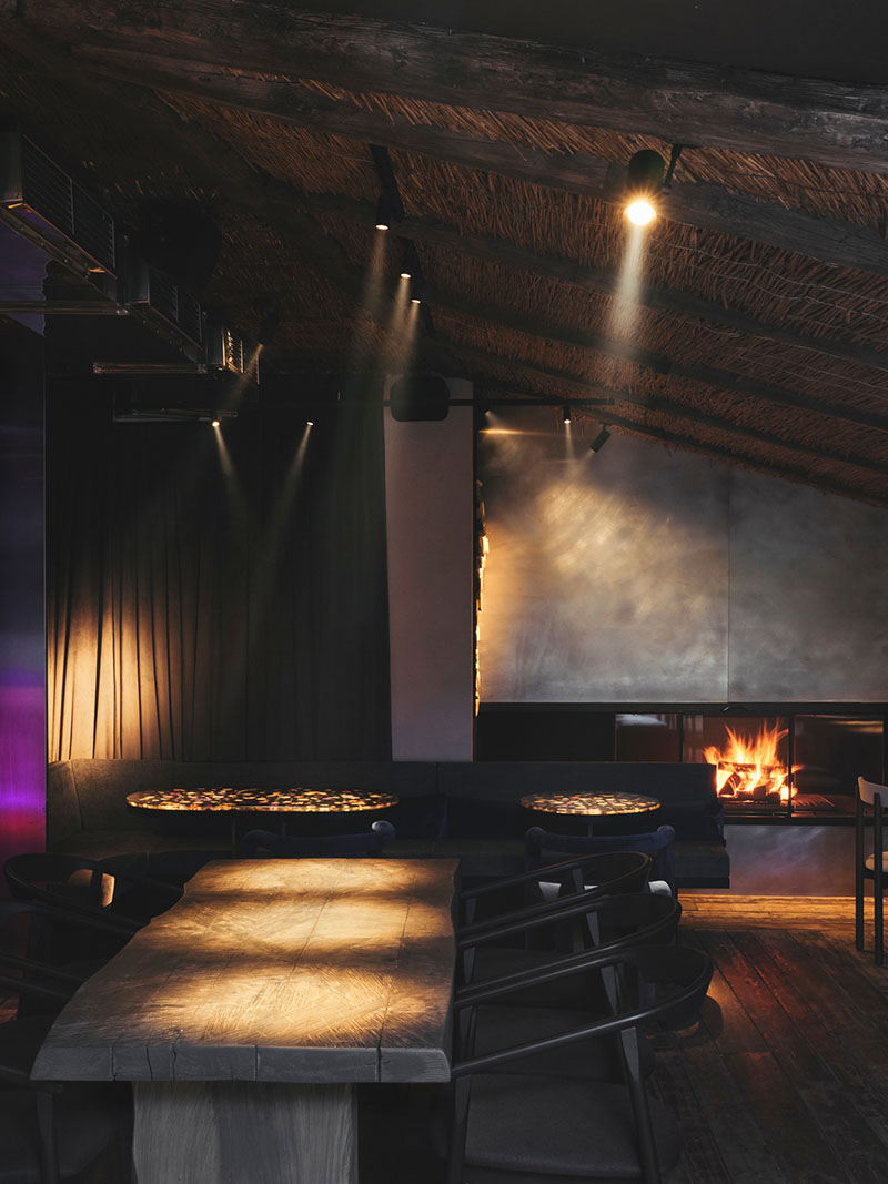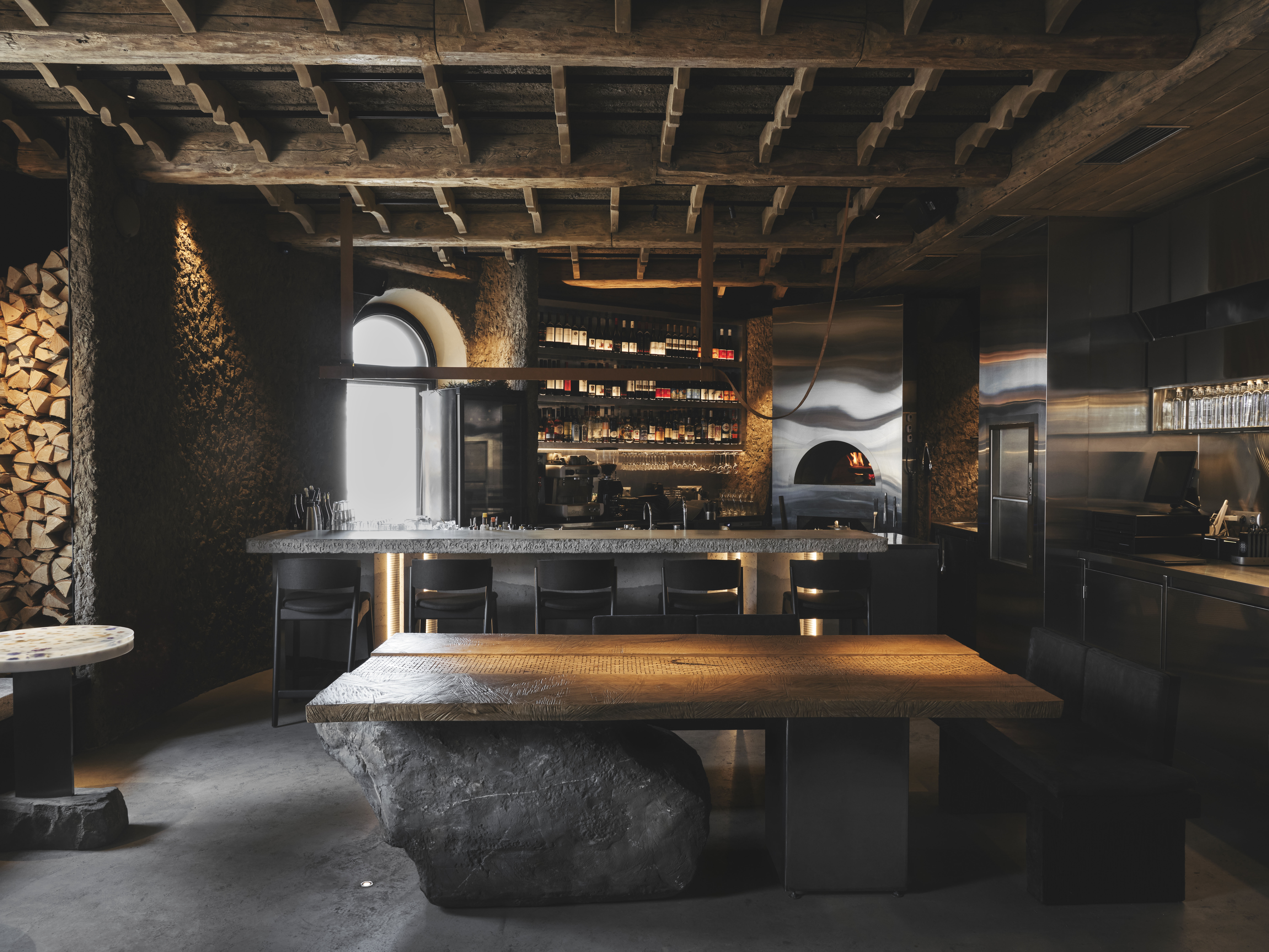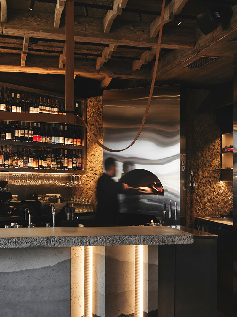 The hostess stand reminds of the relationship between man and nature, how ancient tribes used traps for survival and how much they depended on the world around them. Each boulder carries its own meaning, encouraging the guest to look deeper into the establishment and reflect on the roots and connection to the past.