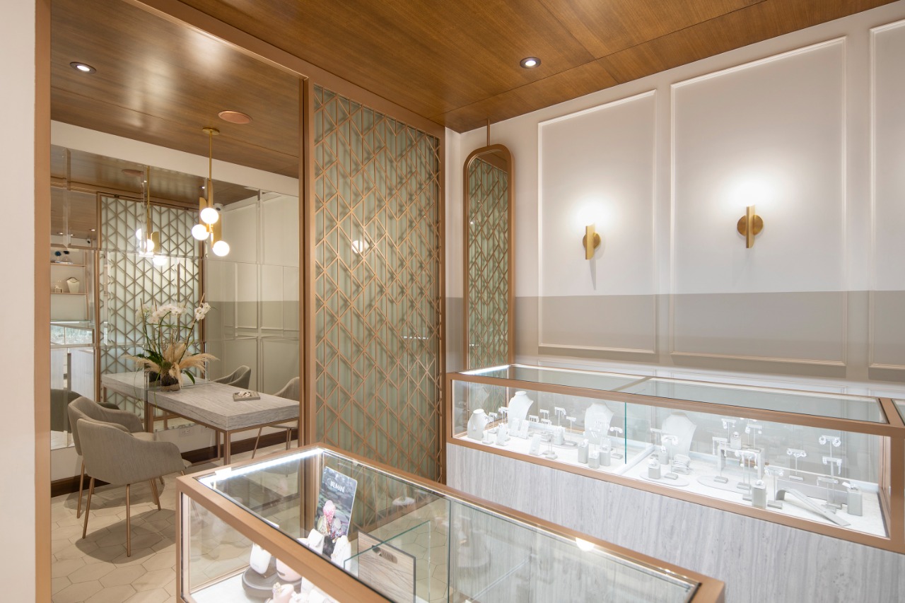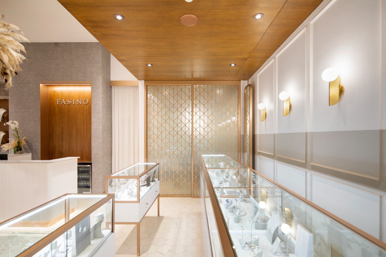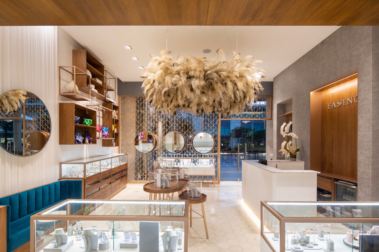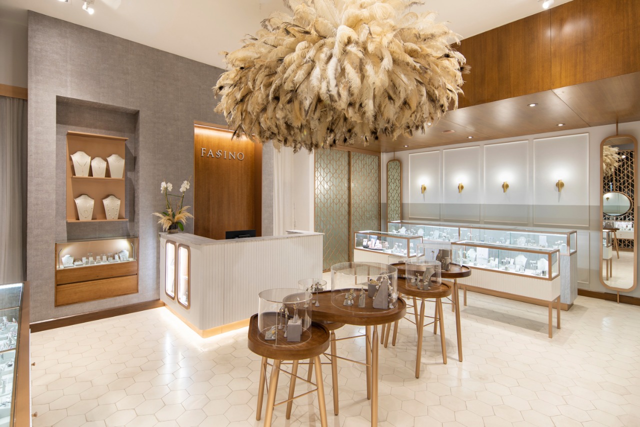 The interior design of Fassino Jewelry is envisioned as a sensory journey—where art, design, and nature converge through a contemporary lens.